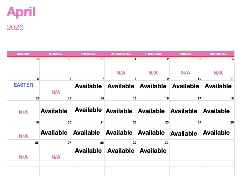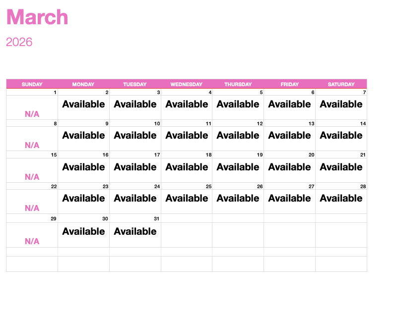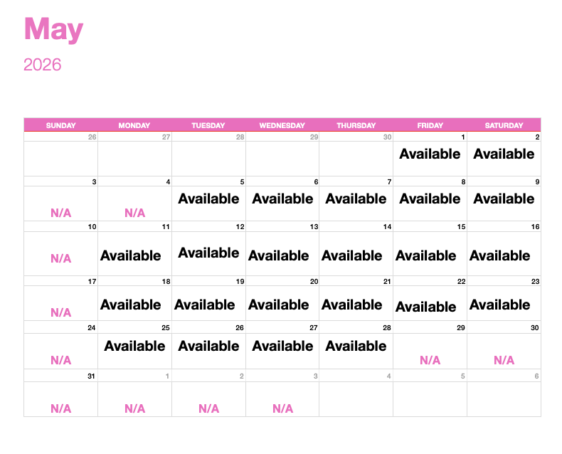My availability: